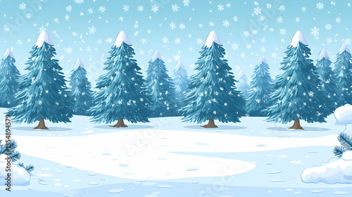 winter, snow, forest, tree, fir, pine, snowy, landscape, cold, nature, blue, white, peaceful, scenic, christmas, background, illustration, graphic, design, digital, scenery, mountain, hill, frosted, glacé, snowflake, conifer, snowdrift, snowfall, frost, coniferous, decor, vector
