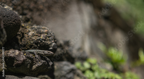 azores, portugal, lizzard, reptile, nature, wilderness, close-up view, bokeh, sun, sunlight, shadow, rough, texture, natural, game, alert, calm, undisturbed, tropical, semitropical, island, animal, wild animal, mediterranean, cliff, rock, structure, camouflage, grey, black, green, ecru, ease