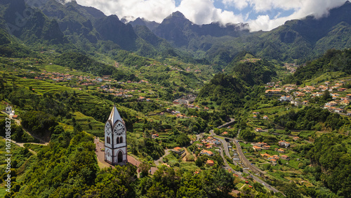 madeira, church, mountain, countryside, architecture, europa, portugal, drone, mount