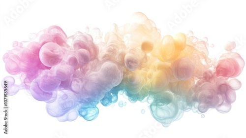 soap bubbles cluster, soft-focus effect, pastel color spectrum, photorealistic, isolated on white background