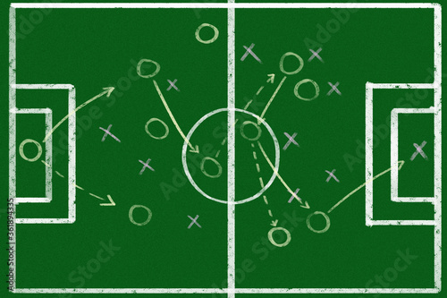drawing, color image, team sport, sport, game, tournament, team, league, match, strategy, game plan, formation, defense, offence, tactic, tactical, plan, playing field, pitch, field, football field, soccer field, football match, chalk, defense, draw