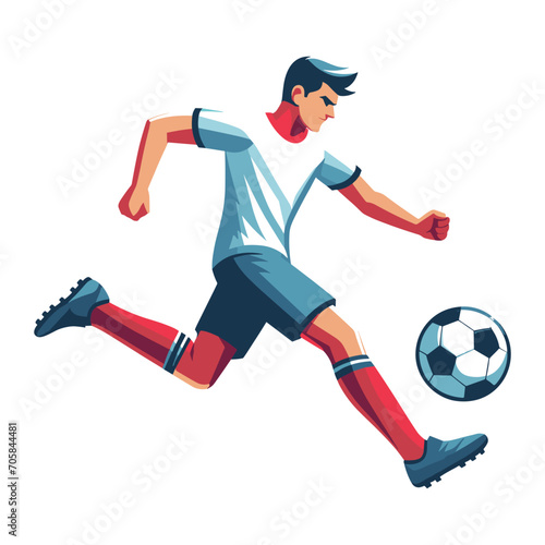 soccer player men athlete vector design, colourful style football game male player illustration, player kicking ball template isolated on white background