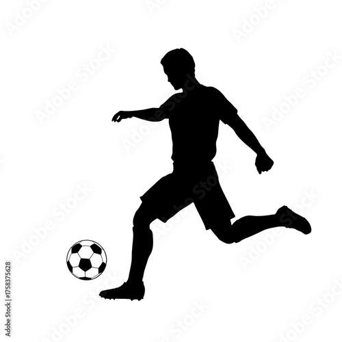 soccer, football, ball, sport, cartoon, kick, game, player, play, vector, illustration, goal, action, children, athlete, playing, three-dimensional, boy, kicking, person, people, team, character, activity, sportsman, football player, silhouette, competition, foot