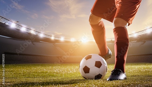 Soccerball being Kicked by Player - Football Game - Ball being Kicked by Soccerplayer wearing Kicks - Ball right before Goal or Impact - Special Effects in Stadium - Start of the Sports Game