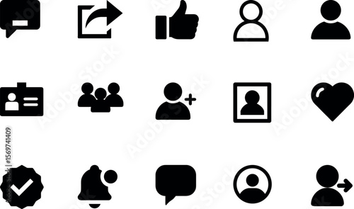 social, media, profile, icon, silhouette, user, group, message, nubes, like, share, comment, follow, person, plus, notification, check, thumb, block, friends, request, id, badge, frame, network, connect, interact, chat, community, icon, set, vector, symbol, business, people, illustration, signs, design, black, computer, head, web, cyberspace, avatar, element