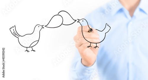 news, social network, bird, cyberspace, communication, chat, tweet, symbol, illustration, message, discussion, follow me, information, signs, marker, speech bubble, gossip, talking, media, web, drawing, pen, draw, speech, say, concept, hand, abstract, man, business, marketing, solution, messaging, icon, white, idea, friends, isolated, crayons, speak, talk, cartoon, art, shape, advertising, advertisement, people, graphic