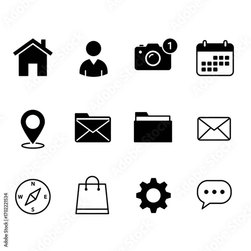 icon, icon, vector, set, symbol, business, computer, illustration, web, black, car, signs, cyberspace, media, design, camera, communication, phone, video, people, silhouette, photo, social, network