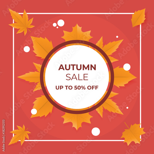 social media post template with the theme of autumn sale. illustration of orange or maple leaves. Leaves background can be used for advertisements, posters, banners, and promotions.