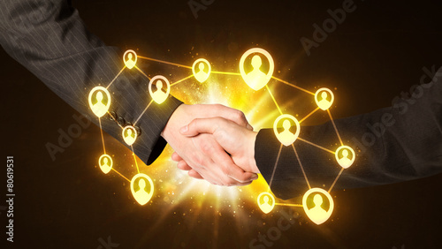 handshake, businessman, deal, partnership, teamwork, social, media, network, multimedia, net, cyberspace, modern, map, digital, line, summing, icon, object, web, mail, electronic, global, wireless, connection, communication, cooperation, agree, partner, project, collaboration, companionship, idea, negotiating, employment, finance, team, design, professional, work, trade, job, part, man, hand, white, trust, congratulating, background, symbol