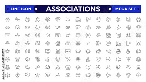 Society web icons in line style. Team, group, people, teamwork, social, association, cooperation, collection. Associations outline icon set.