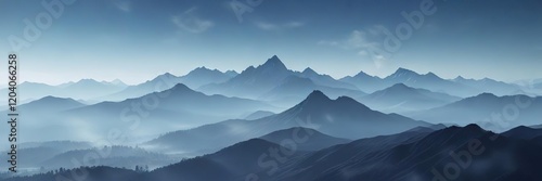 Soft abstract blue gradient landscape with misty mountains and valleys in the distance, abstract, natural scenery, misty, landscape