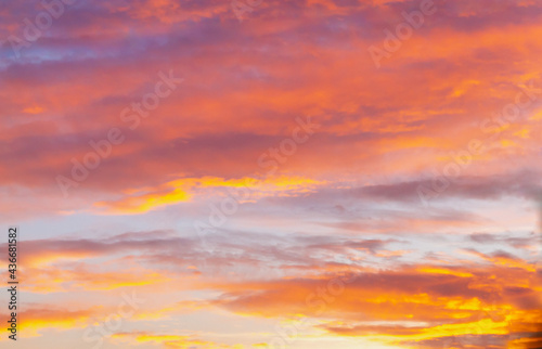 Soft, airy sky in the evening with feathery clouds in orange and blue shades