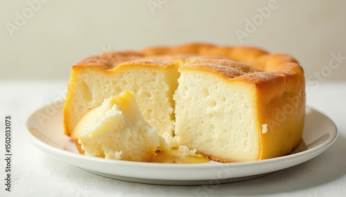 Soft brie, bloomy rind, smooth surface, pure white scene, culinary, still life