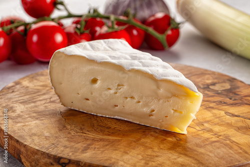 Soft camembert cheese over board