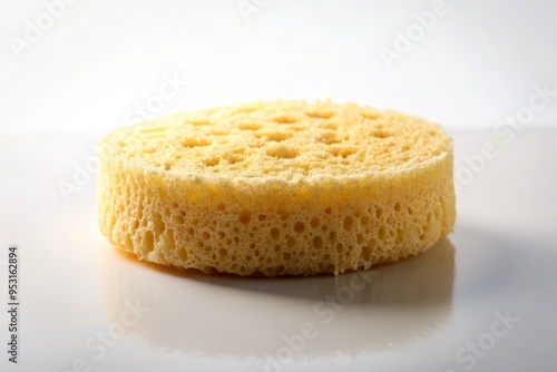 Soft, delicate sponge illuminated by a subtle rim of light, creating a sense of airiness and minimalism on a clean white background.