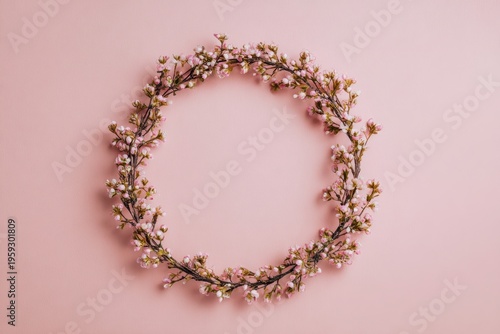 Soft feminine wreath of tiny blossoms in a circular floral layout
