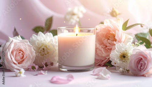 Soft Glow of a Candle Amidst Delicate Pink and White Blooms, Creating a Serene and Romantic Ambiance for Peaceful Relaxation and Contemplation