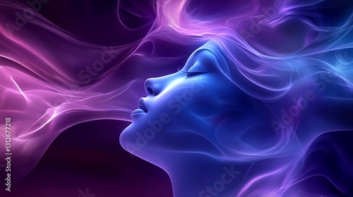 soft glowing ribbons, abstract and futuristic, vibrant purple and blue tones, high resolution, fluid and artistic design, smooth flowing waves, cosmic and elegant