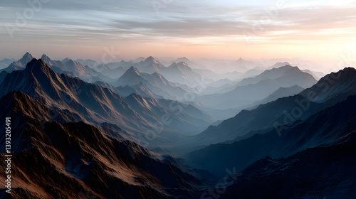 soft, gradient, sunset, light, framing, distant, rocky, peak, glow, sky, hue, twilight, warm, evening, calm, serene, peaceful, tranquil, natural, scenic, majestic, silhouette, gradient, dusk, horizon
