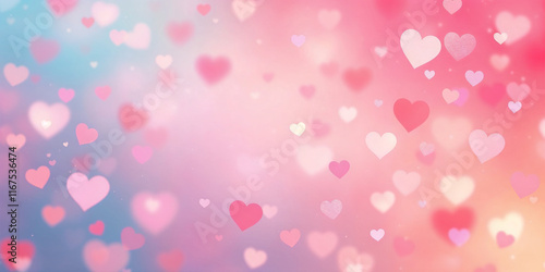 Soft pastel background featuring floating pink and white heart shapes, symbolizing love and affection with a dreamy, romantic vibe suitable for festive and heartfelt design projects