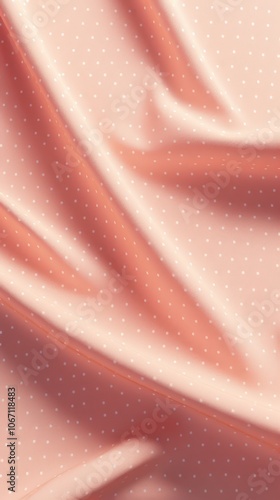 Soft peach fabric with delicate white polka dots, creating an elegant and refined texture.