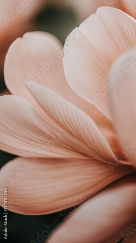 Soft peach flowers blossom beautifully, their delicate petals layering and creating an inviting texture that captivates the senses in a tranquil garden setting