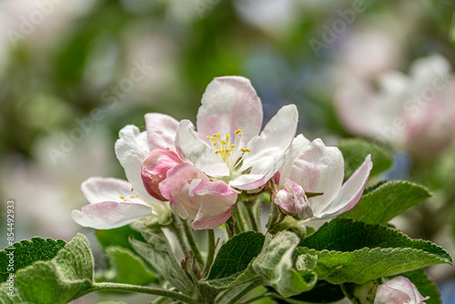 apple, apple blossom, flower, nature, blossom, tree, beauty, bud, leaf, springtime, bright, tree branch, background, closeup, plant, season, growth, no people, white, botany, floral, green, pink, garden, spring, horizontal, april, freshness, apple tree, macro, outdoors, sky, bloom, photo, soft, fragility, blooming, closeup, decoration, flora, sunny, day, flower head