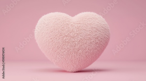 Soft Pink Fuzzy Heart Cushion on Pink Background for Romantic and Cozy Themes
