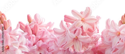 Soft pink hyacinth blossoms arranged elegantly with blank white space for customizable text overlay in floral design motif