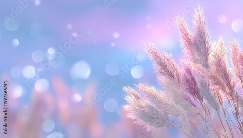 Soft pink pampas grass against a pastel bokeh background