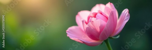 Soft pink petals unfolding from a delicate stem, foliage, gentle