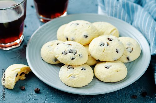 Soft ricotta chocolate drops cookies in a plate