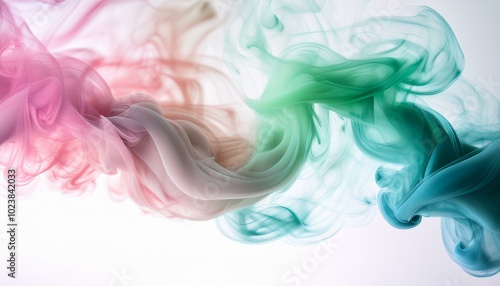 Soft Watercolor Waves in Shades of Blue and Green, Reminiscent of the Sea on White Background
