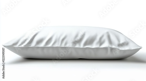 Soft White Pillow Mockup Bedding Texture Blank Cushion Side View Isolated on White Background