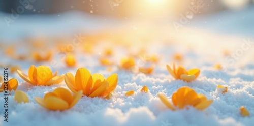 Softly falling saffron petals on a snowy landscape, petals, saffron