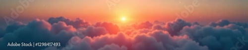 Softly glowing sun peeks through a gap in the clouds, warm glow, misty