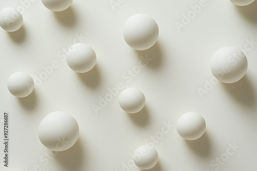 Softly lit white spheres casting shadows on a light background, conveying a modern minimalist aesthetic with copy space.