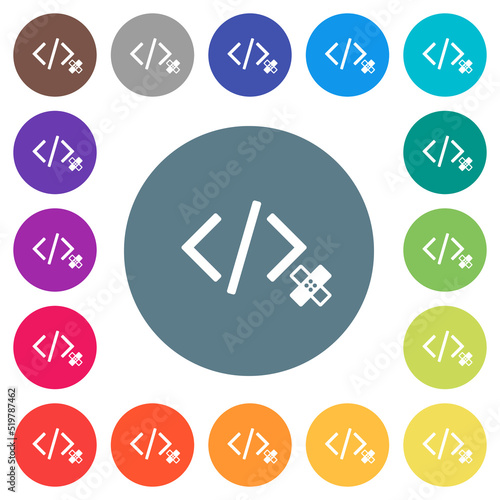 Software patch flat white icons on round color backgrounds