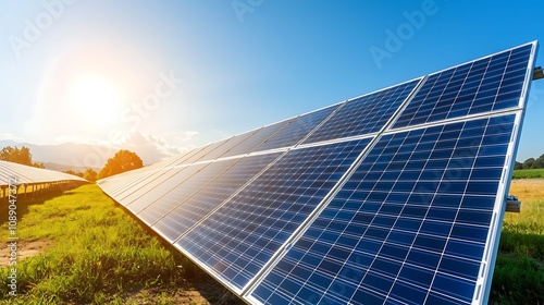 Solar energy generation outdoor solar farm renewable energy rural landscape wide angle sustainability