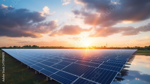Solar panel and golden hour sunlight
