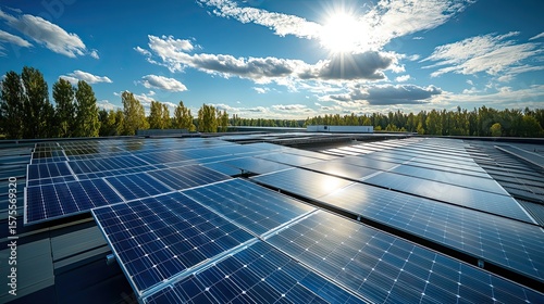 Solar Panel Array Installed on Factory Roof for Renewable Energy Efficiency