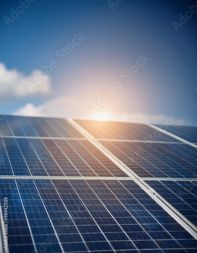 Solar panel with blue sky and sunset. concept clean energy, electric alternative, power in nature