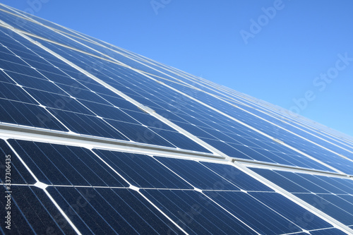Solar panels against blue sky background.Against The Deep Blue Sky in suny weather
