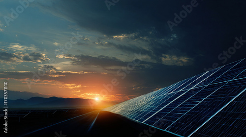 solar, energy, panel, sun, sunset, sky, cloud, road, mountain, landscape, clean, renewable, alternative, power, electricity, technology, environment, nature, horizon, dusk, dawn, field, photovoltaic, sustainable, eco, friendly, future, generation, array, farm, green