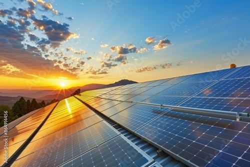solar, panel, sunset, energy, rooftop, sky, cloud, blue, orange, yellow, green, horizon, nature, environment, renewable, power, sun, light, clean, technology, future, sustainable, eco, friendly, green energy, alternative, electricity, bright, glare, day, evening, summer, beautiful, landscape, view, photovoltaic, alternative energy, energy saving, clean energy