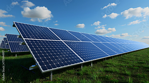 solar panels on a green field, harnessing solar energy, renewable energy, natural energy, converting solar heat energy into electrical energy