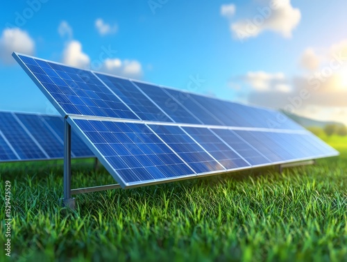 Solar panels on lush green grass harnessing clean energy for sustainable future