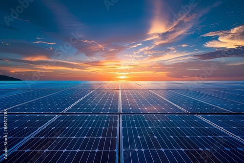 Solar Panels on Sunset Background created with Generative AI