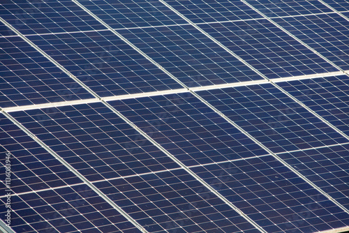 Solar panels, photovoltaic, alternative electricity source, concept of sustainable resources. Solar power station.