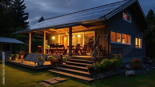 Solar powered home lights decorate the house
